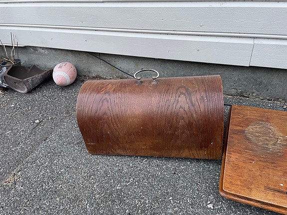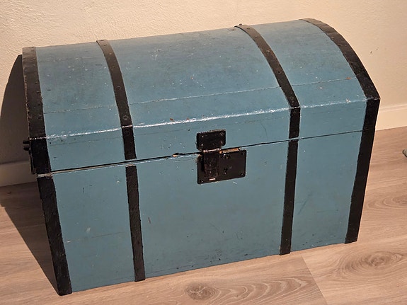 Ukjent merke malt trekiste med buet lokk