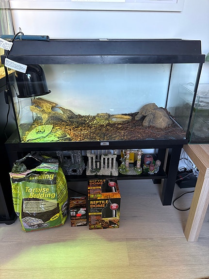 Skilpadde og akvariet m/utstyr til salgs.