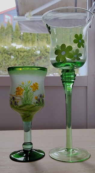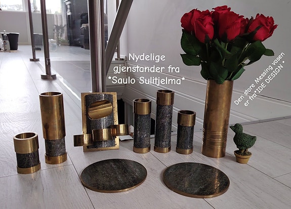 Vintage Saulo telysholder, Glass brikker, vegglysholder og vase