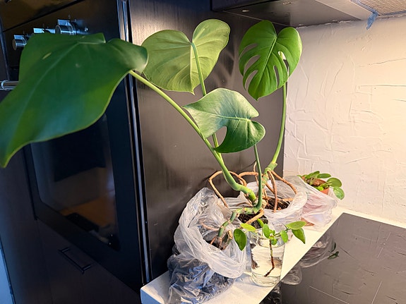 RESERVERT: Stiklinger av monstera, elefantøre og en kunstig plante