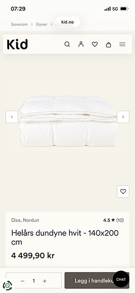 Uåpnet Disa Nordun Helårs dundyne hvit - 140x200 cm Verdi 4500kr