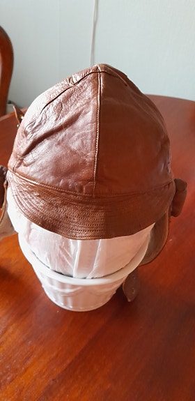 Flott gammel kjørelue, snart antikk, skinn i meget god stand!