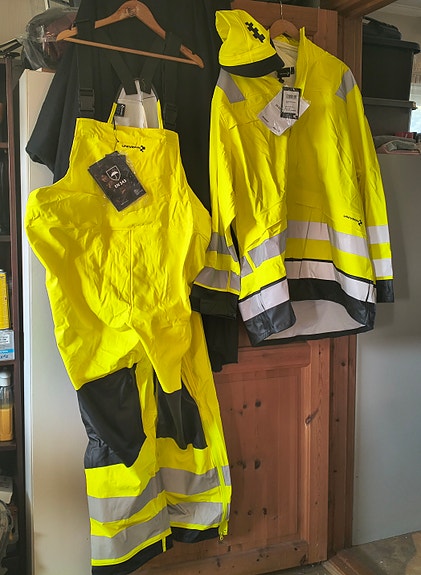Regnjakke og bukse 4X. gul med refleks kl 3. iso 20471 Uten firmalogo.