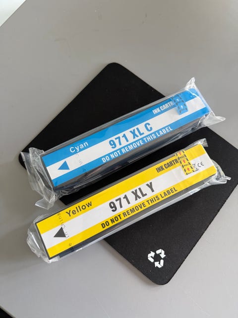 HP 971 XL blekkpatroner cyan og gul - selges samlet