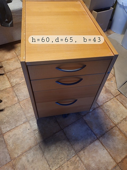 Skuffeseksjon på hjul 60x65x43 cm i tre