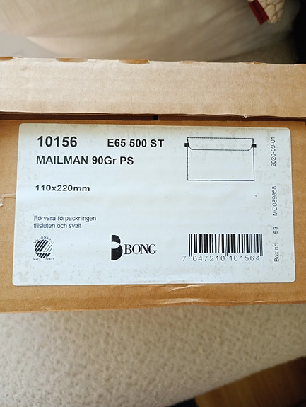 2500 stk Konvolutter med vindu - 5 esker