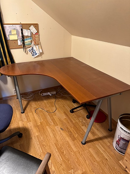 Skrivebord med hjørneløsning i tre og metallben