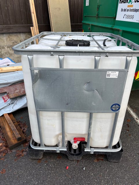 Stålcontainer / tankcontainer med pumpe +/- reparasjonsobjekt