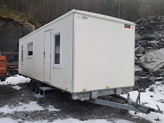 Hvit brakkevogn / arbeidsbrakke på henger
