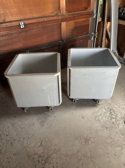 Store metallkasser på hjul